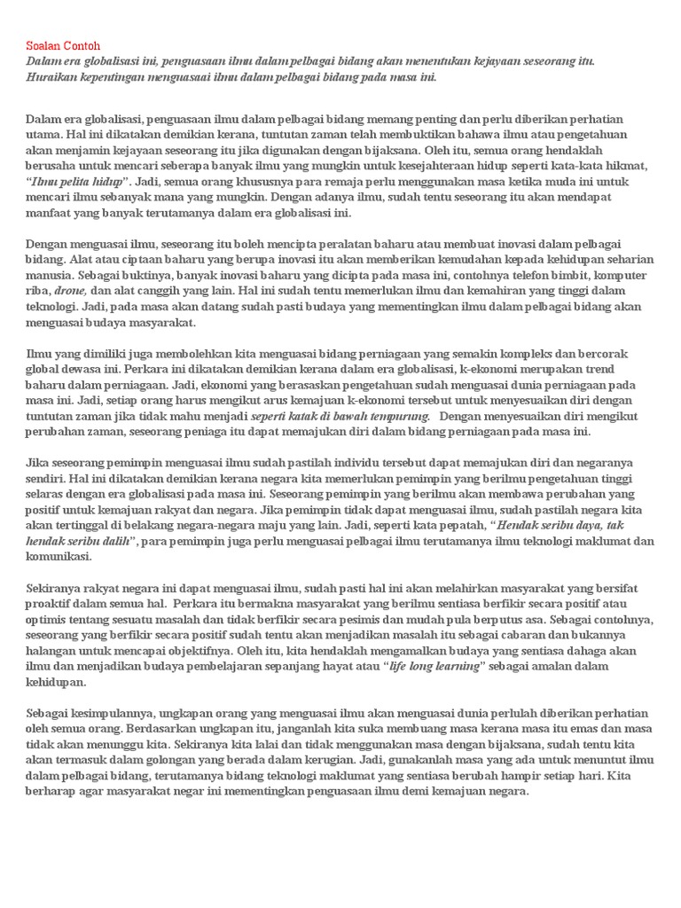 Langkah -Langkah Membuat Karangan. Nota Komsas Isi Karangan Contoh karangan SPM PT3 STPM. Itulah mengapa contoh esai di kalangan peneliti menjadi penting bahkan menjadi jurnal yang siap diaplikasikan ke dalam ragam keilmuan.